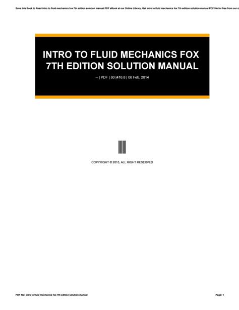 Download online fox-fluid-mechanics-7th-edition-solution-manual Doc ManyBooks
